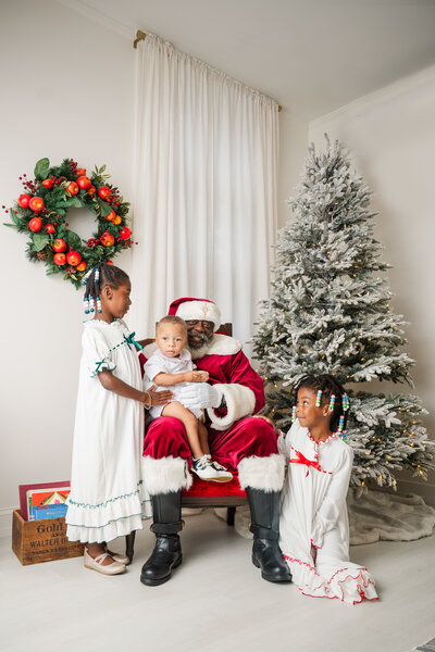 Our Santas are the real deal! Real beards, jolly laughs, sleigh bells, fur-trimmed velvet suits. They are incredible with bigs and littles alike! You will find absolute Christmas joy inside the studio with our Santas and leave believing they just came in from the North Pole.