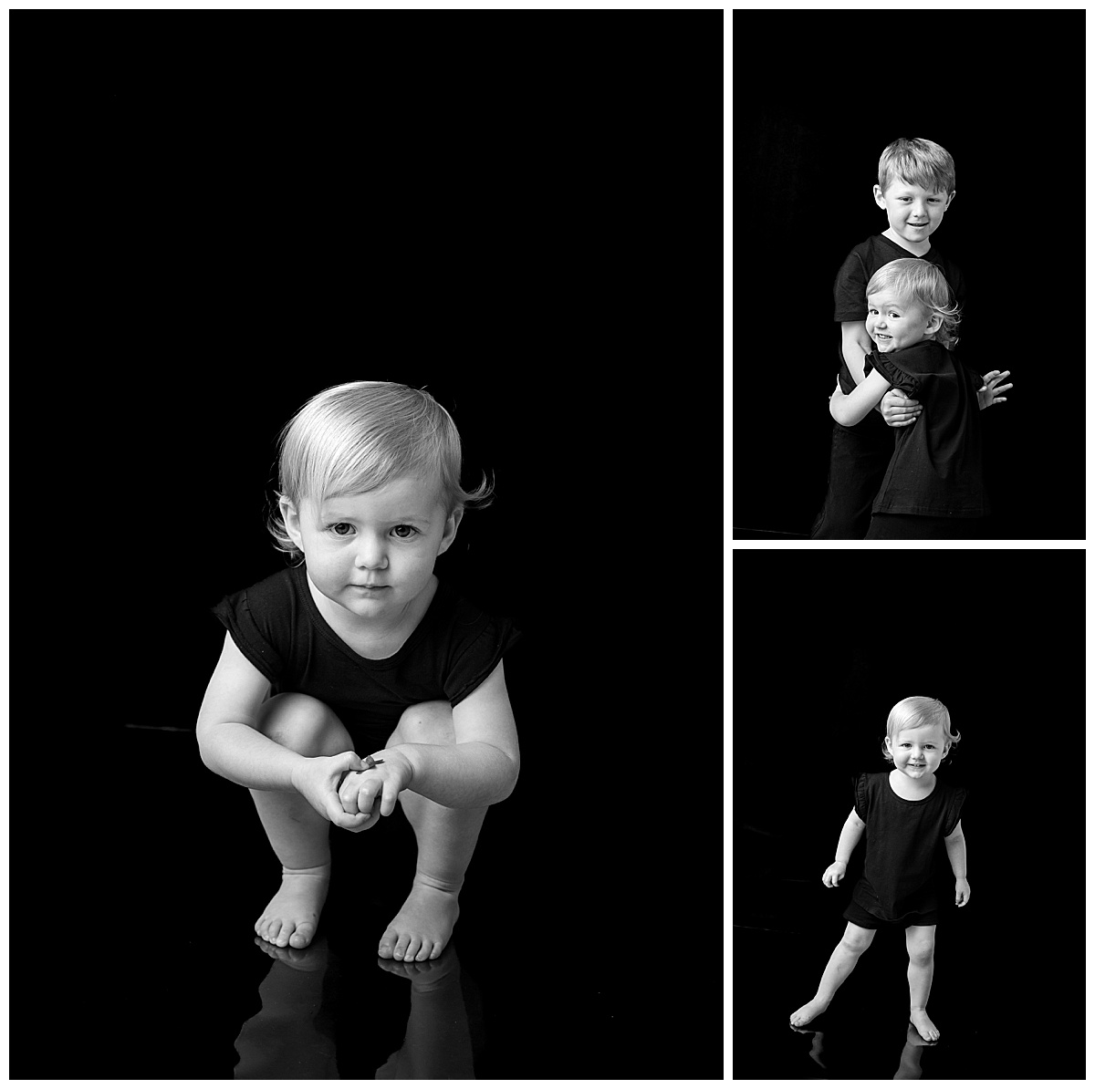 Another beautiful benefit of the Personality Portrait Membership is the opportunity to include siblings each year. Childhood is not experienced in isolation, and these relationships are often some of the most meaningful to document. Alongside individual black and white children’s portraits, families are also welcomed into the studio for a simple, expressive family portrait at each annual session. These relaxed moments together create an even richer visual story — capturing not only who each child is becoming, but how your family grows and connects over time.